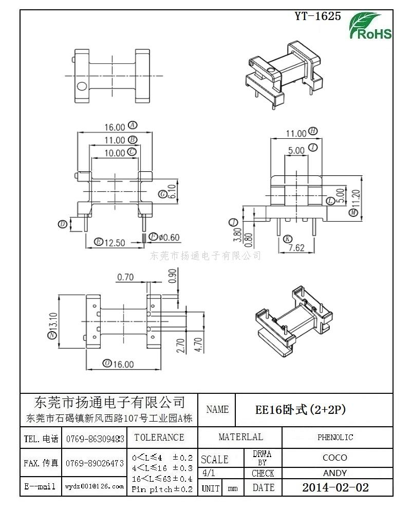 EE16变压器骨架EE16电木骨架EE16高频骨架 卧式2+2P YT-1625