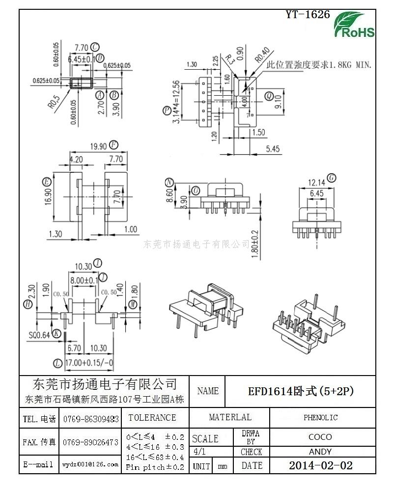 EFD1614变压器骨架EFD1614电木骨架EFD1614高频骨架 卧式5+2P YT-1626