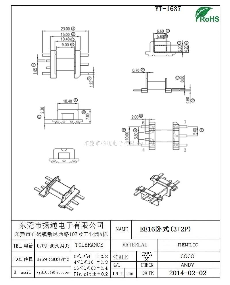 EE16变压器骨架EE16电木骨架EE16高频骨架 卧式3+2P YT-1637