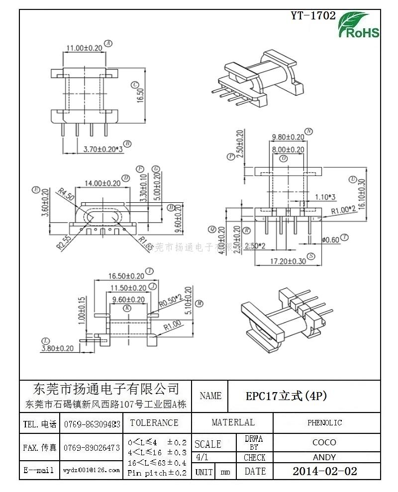 EPC17变压器骨架EPC17电木骨架EPC17高频骨架 立式4P YT-1702