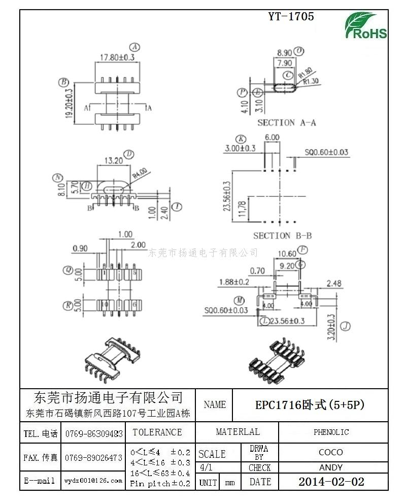 EPC1716变压器骨架EPC1716电木骨架EPC1716高频骨架 卧式5+5P YT-1705