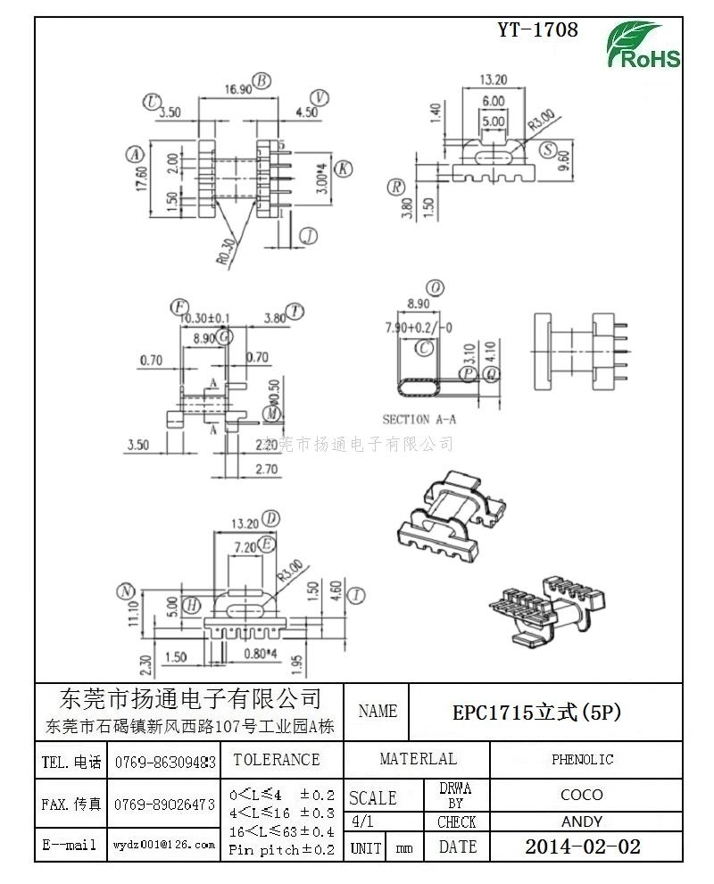 EPC1715变压器骨架EPC1715电木骨架EPC1715高频骨架 立式5P YT-1708