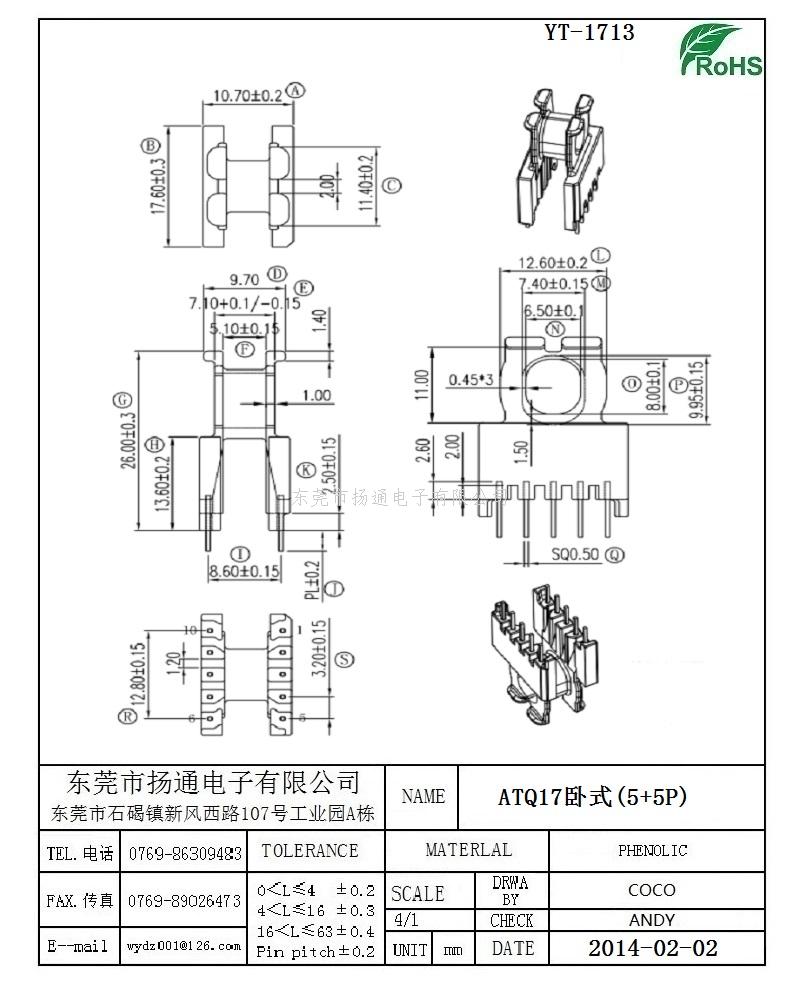 ATQ17变压器骨架ATQ17电木骨架ATQ17高频骨架 卧式5+5P YT-1713