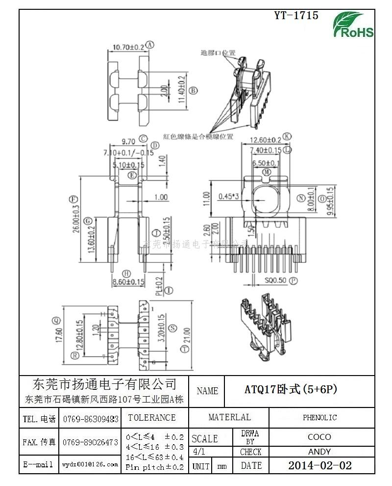ATQ17变压器骨架ATQ17电木骨架ATQ17高频骨架 卧式5+6P YT-1715