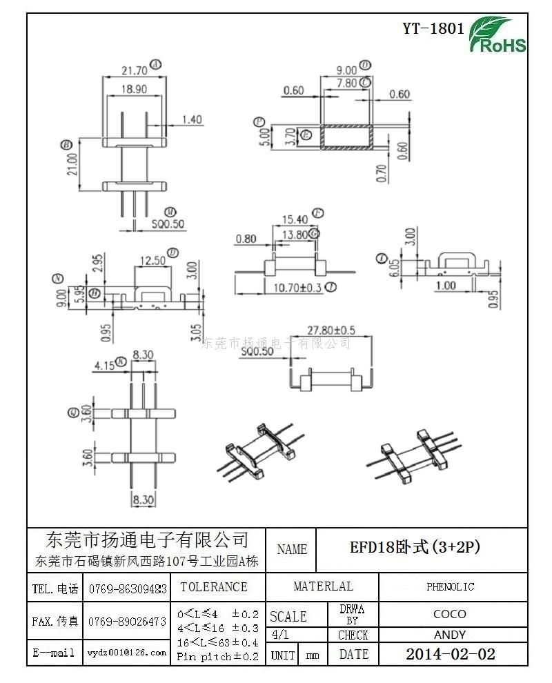 EFD18变压器骨架EFD18高频骨架EFD18电木骨架 卧式3+2P YT-1801