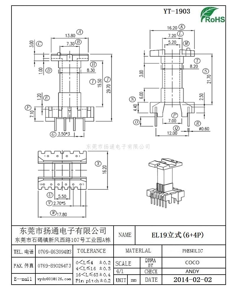 EL19变压器骨架EL19电木骨架EL19高频骨架 立式6+4P YT-1903