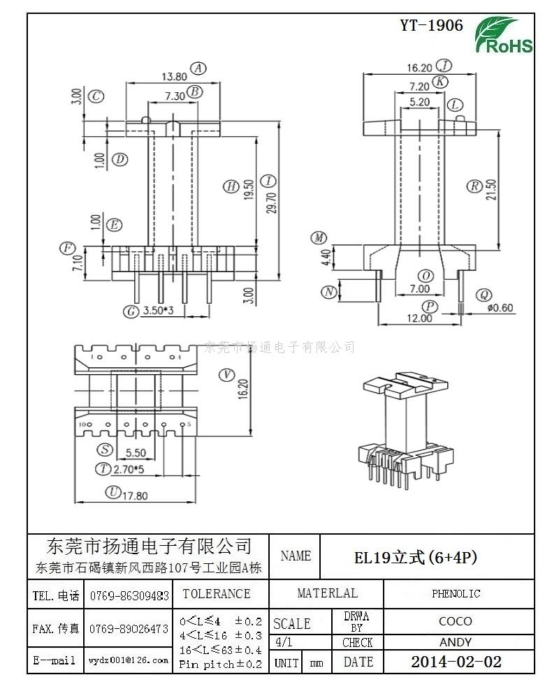 EL19变压器骨架EL19电木骨架EL19高频骨架 立式6+4P YT-1906