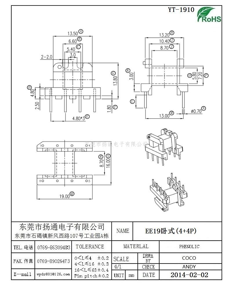 [下一个:EI19变压器骨架EI20电木骨架EI19高频骨架 卧式2+2P YT-1909]