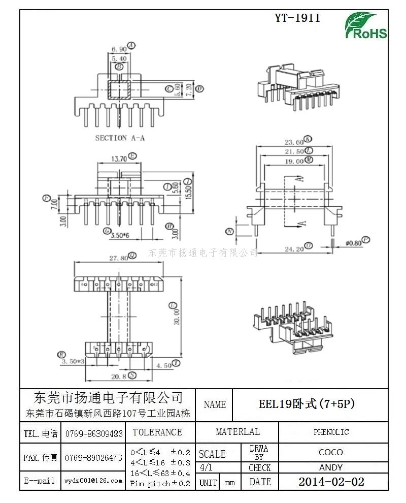 EEL19变压器骨架EEL20电木骨架EEL19高频骨架 卧式7+5P YT-1911