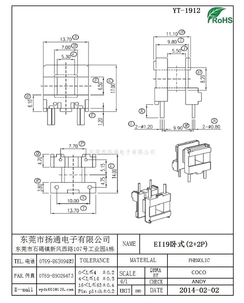 EI19变压器骨架EI19电木骨架EI19高频骨架 卧式2+2P YT-1912
