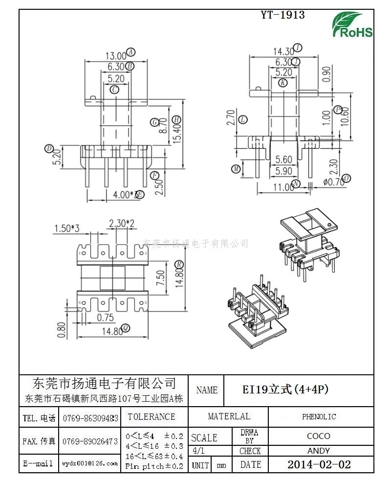 EI19变压器骨架EI19电木骨架EI19高频骨架 立式4+4P YT-1913