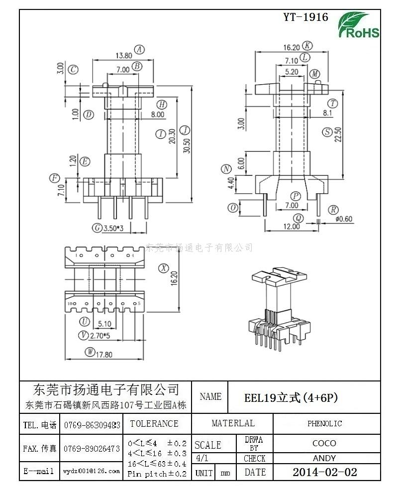 EEL19变压器骨架EEL20电木骨架EE19高频骨架 立式4+6P YT-1916