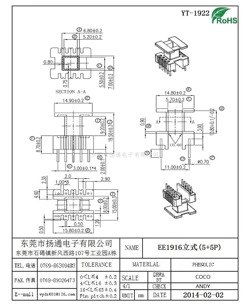 EE1916变压器骨架EE1917电木骨架EE19高频骨架 立式5+5P YT-1922