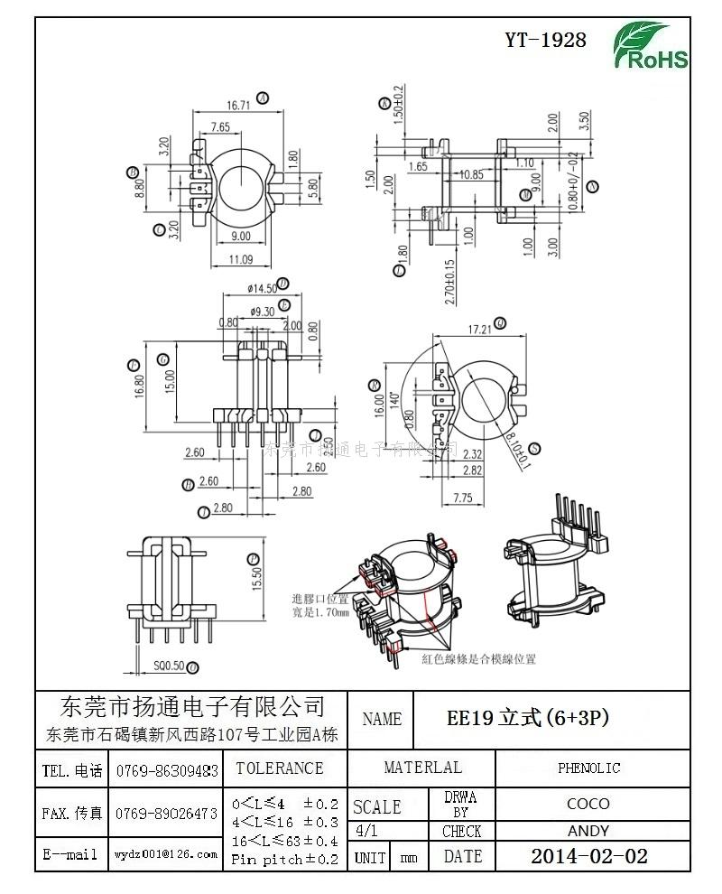 EE19变压器骨架EE20电木骨架EE19高频骨架 立式6+3P YT-1928