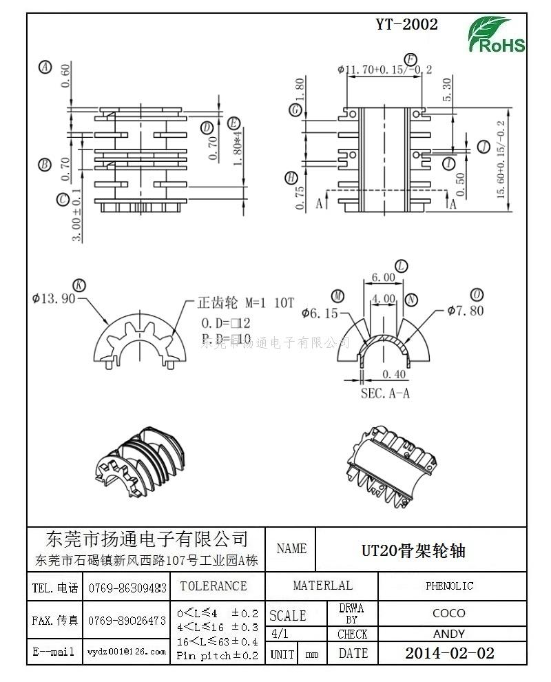 UT20变压器骨架UT20电木骨架UT20高频骨架 骨架轮轴 YT-2002