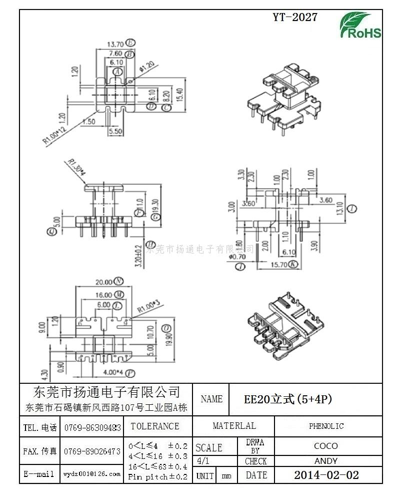 EE20变压器骨架EE20电木骨架EE20高频骨架 立式5+4P YT-2027
