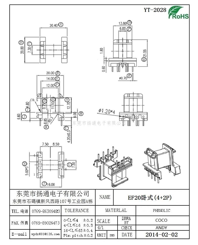 EF20变压器骨架EF20电木骨架EF20高频骨架 卧式4+2P YT-2028