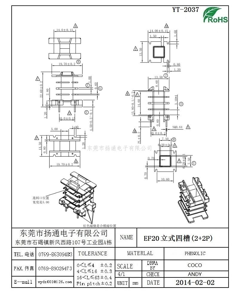 EF20变压器骨架EF20电木骨架EF20高频骨架 立式四槽2+2P YT-2037
