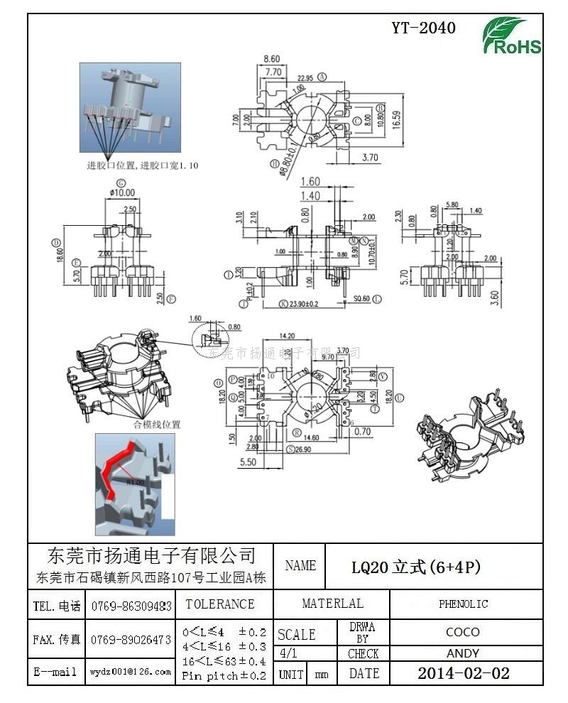 LQ20变压器骨架LQ20电木骨架LQ20高频骨架 立式6+4P YT-2040