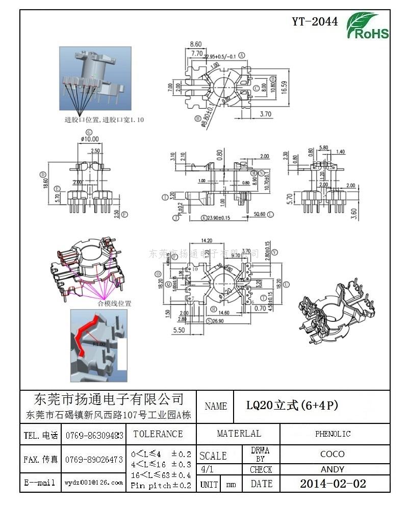 LQ20变压器骨架LQ20电木骨架LQ高频骨架 立式6+4P YT-2044