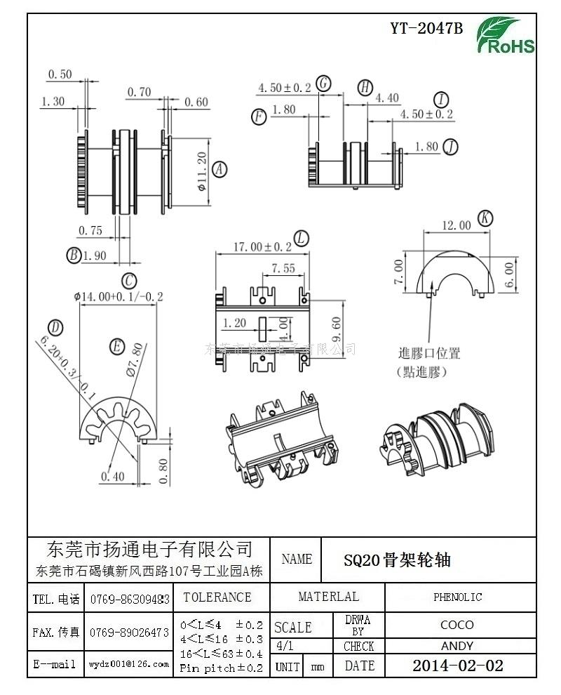 SQ20变压器骨架SQ20电木骨架SQ20高频骨架 骨架轮轴 YT-2047B
