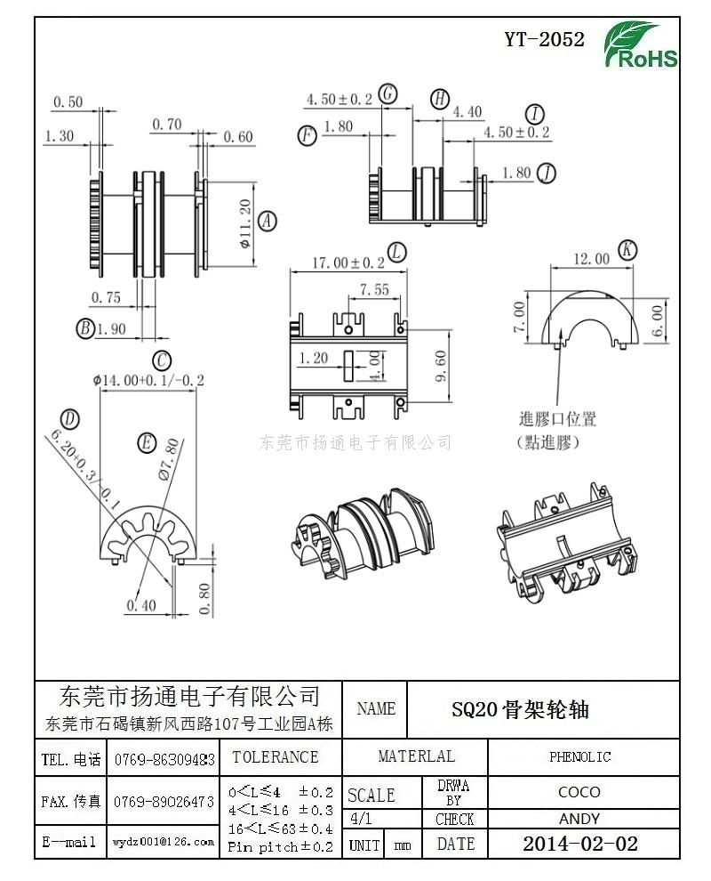 20电木骨架SQ20高频骨架 骨架轮轴 YT-2052