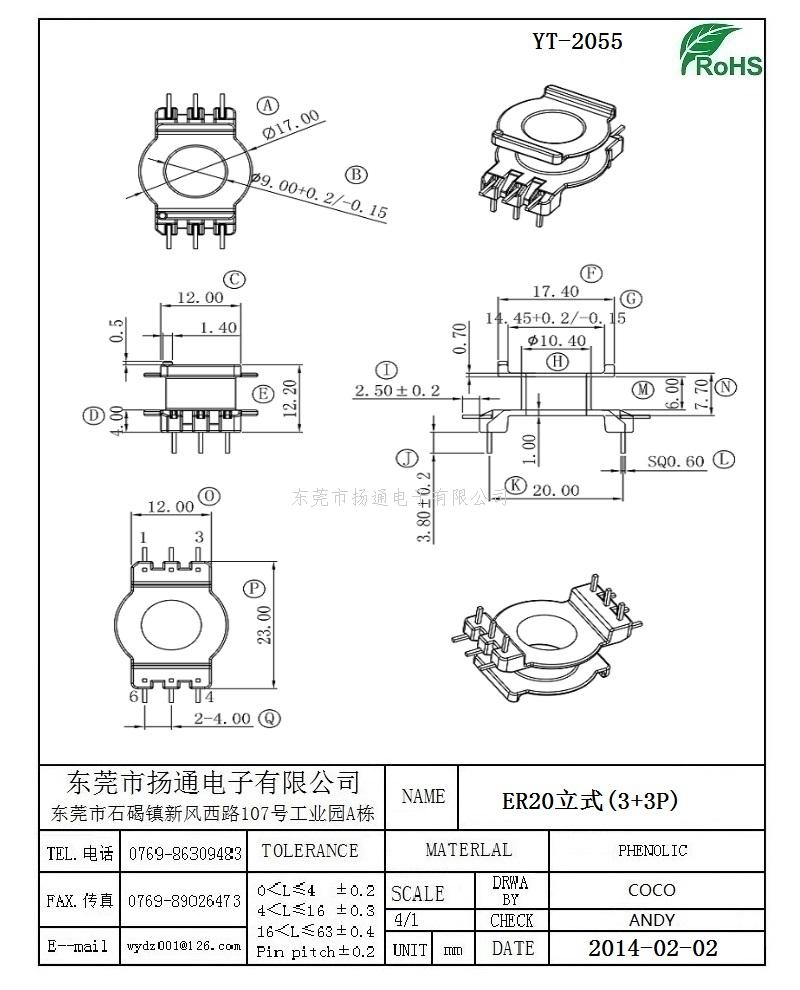 ER20变压器骨架ER20电木骨架ER20高频骨架 立式3+3P YT-2055