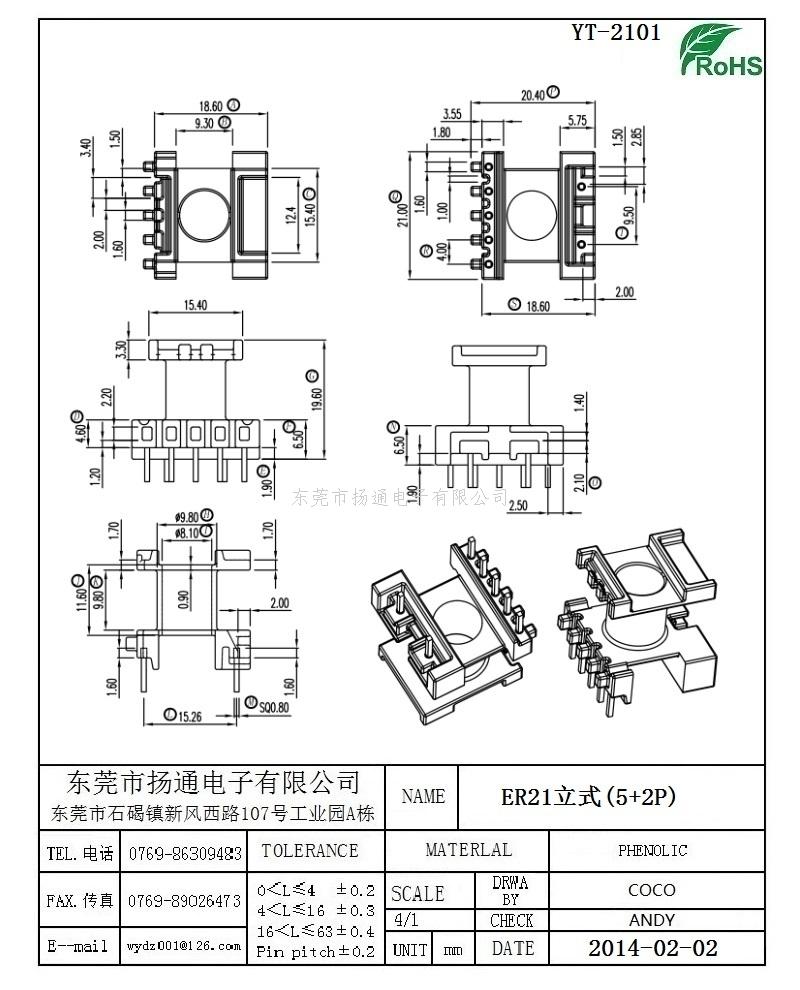 ER21变压器骨架ER21电木骨架ER21高频骨架 立式5+2P YT-2101