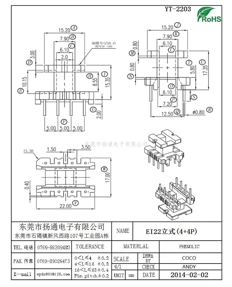 EI22电木骨架EI22高频骨架 立式4+4P YT-2203