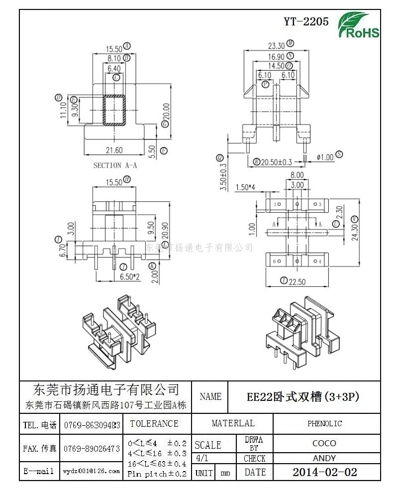 EE22变压器骨架EE22电木骨架EE22高频骨架 卧式双槽3+3P YT-2205