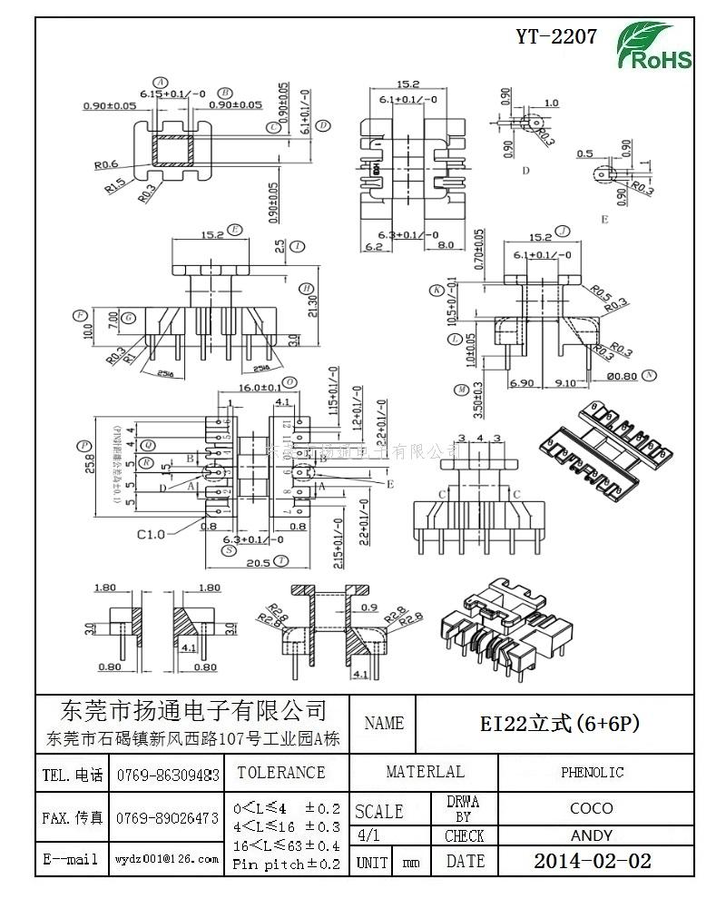 EI22变压器骨架EI22电木骨架EI22高频骨架 立式6+6P YT-2207
