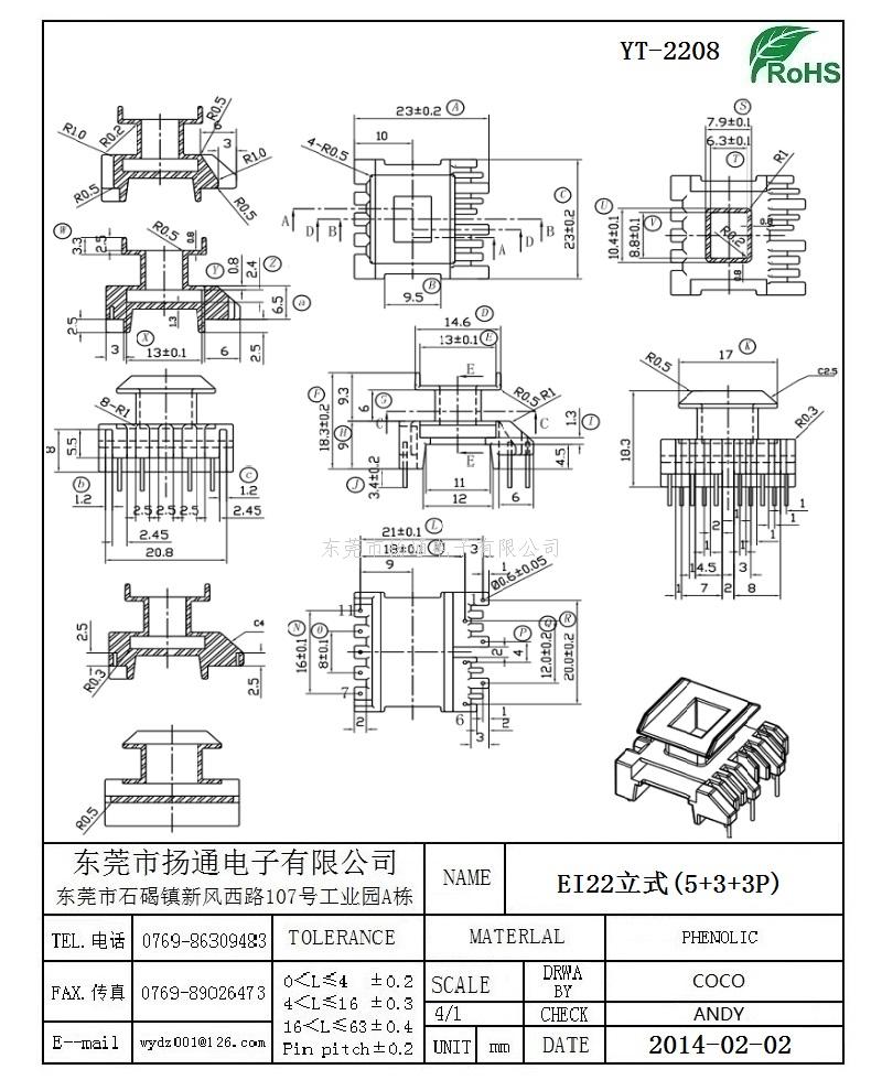 EI22变压器骨架EI22电木骨架EI22高频骨架 立式5+3+3P YT-2208